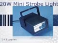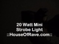 20W MINI STROBE En liten strob med mycket stark ljusintensitet. Reglage bak för blixthastighet 0 - 10 blixtar per sekund. Robust slagtåligt ABS-hölje med justerbart fäste.